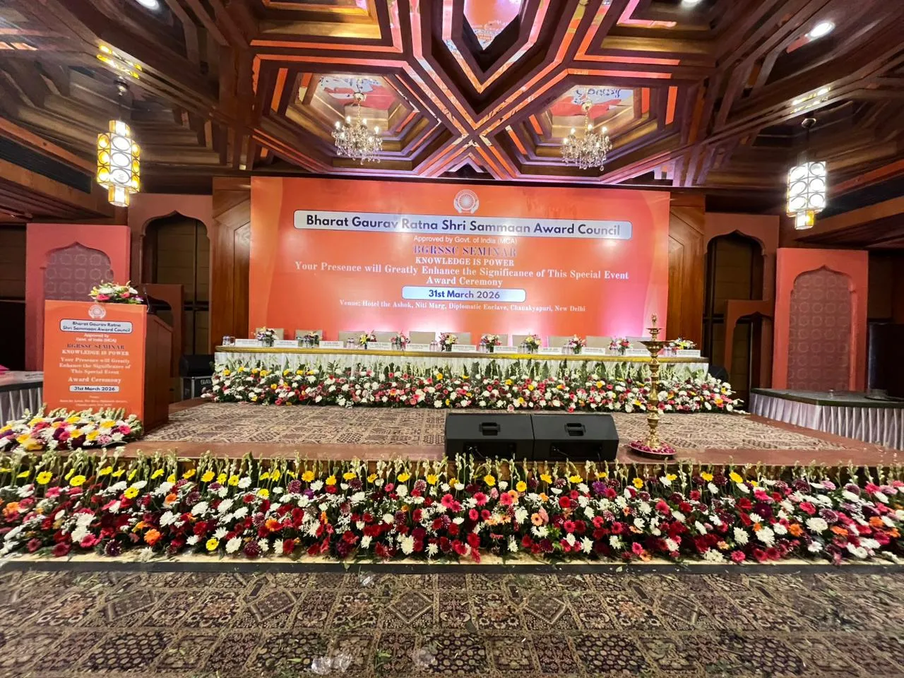 Corporate Event Floral Stage Decoration at Hotel in Delhi NCR